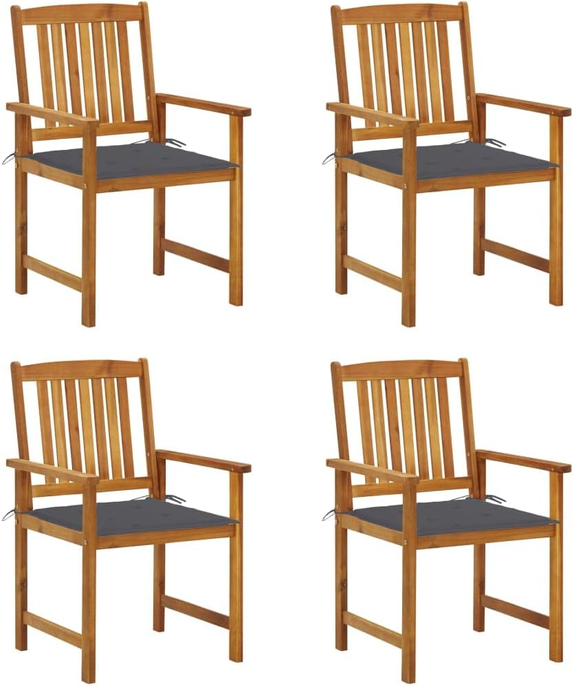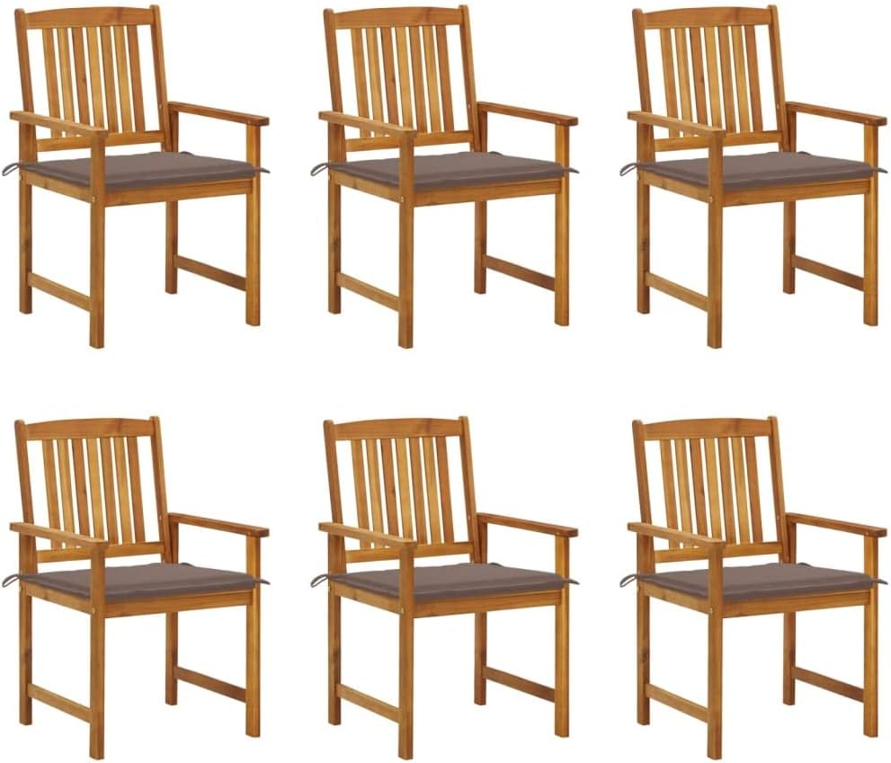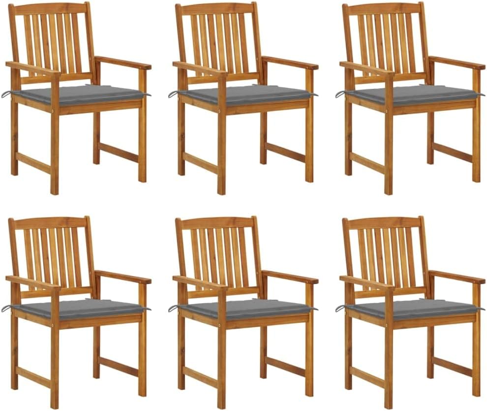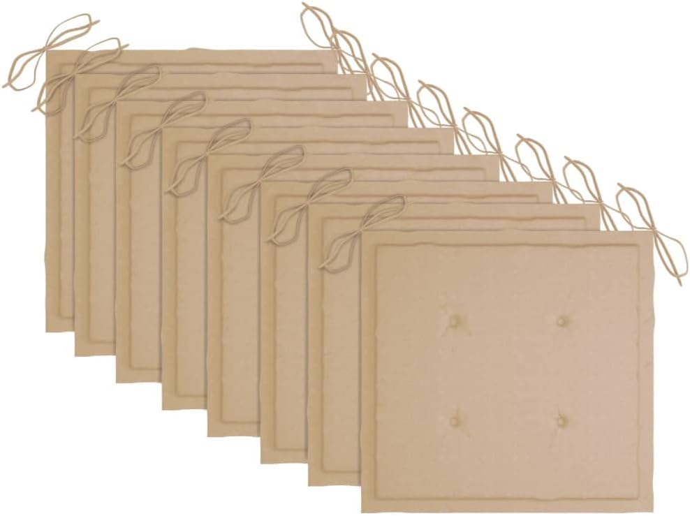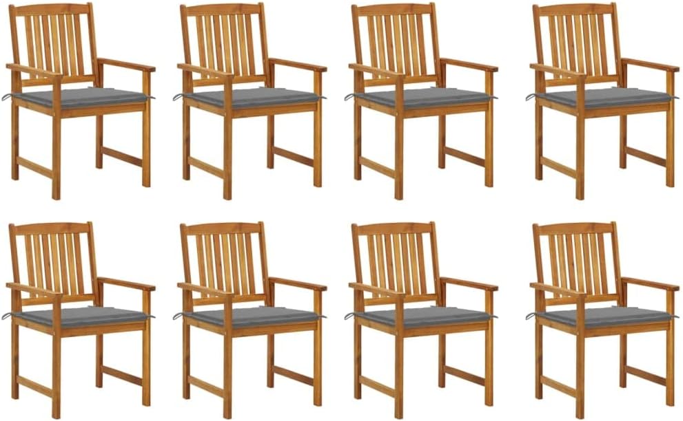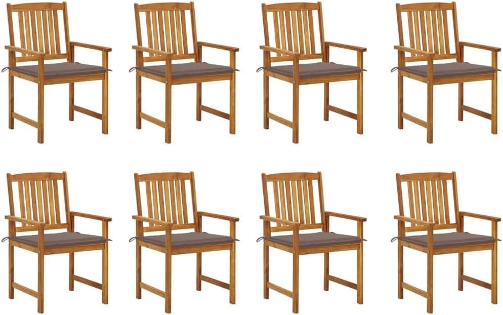 Add additional comfort in your patio area with this wooden patio chair set. It is ideal for conversing with family and friends or just enjoying the soothing sunbathing!This outdoor chair set is made of solid acacia wood with an oil finish, which is a hardwood with dense grains. Rough acacia wood has the strength to bear the weight, and also stand the wear and tear of time. This wooden chair set is stable, durable and weather-resistant. Additionally, the oil-finished surface makes the chairs easy to clean with a damp cloth. What's more, the included cushions provide extra comfort.Note: In order to extend the life of your outdoor furniture, we recommend you to clean it regularly and do not leave it outdoors without protection unnecessarily.Clean: Use a mild soap solutionStoring: If possible, store in a cool, dry place indoors. If the product is stored outdoors, protect it with a waterproof cover. Wipe and dry the excess water or snow from flat surfaces after a rain or snowfall. Allow sufficient air circulation to avoid moisture-related damage.Cushion color: BeigeMaterial of chair: Solid acacia wood with an oil finishMaterial of cushion: Fabric (100% polyester)Dimensions of chair: 24" x 22.4" x 36.2" (W x D x H)Seat size: 18.9" x 18.1" (W x D)Seat height from the ground: 17.1"Dimensions of cushion: 19.7" x 19.7" x 1.2" (L x W x T)Easy to maintainWeather-resistantEach cushion features 2 sets of ropesAssembly required: YesDelivery contains:8 x Chair8 x Cushion