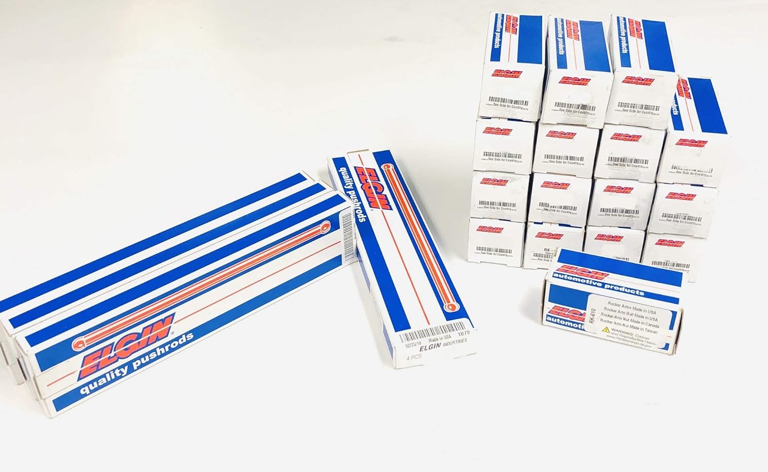 This listing is for 16 Elgin Industries (Elgin, IL, USA) stock 5/16" diameter x 7.794" over all length compatible replacements for 1968-95 Chevy Small Block 350 305 265. For NON Roller lifter engines. Stock 5/16" diameter x 7.794" over all length Push Rods and 16 Rocker arms, balls and nuts that are Self-Aligning Stamped Steel Stock 1.5 Rocker Ratio. For engines WITH PRESS IN STUDS. Screw in studs require a different ball & nut